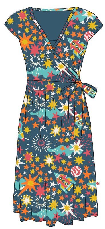 This delightful blue dress is decorated in a super bright galaxy print! Our wrap dress is made from soft jersey cotton with a small smidgen of Lycra. It allows for the perfect amount of stretch, whilst draping beautifully. It's a do-it-all cap sleeve dress designed for women of all ages, shapes and sizes. Our dress is designed to be mid-length. Wear before, during and after pregnancy. It's great for breastfeeding. It looks simply amazing. As if our dress wasn't enough already, it comes with pockets as well- how practical. Don’t forget to check out the rest of our ‘galaxy’ collection. Get your hands on the matching kidswear and menswear. Create the coolest twinning outfits! Available in sizes XS (6-8), S (8-10), M (12-14), L (16-18) and XL (18-20).
