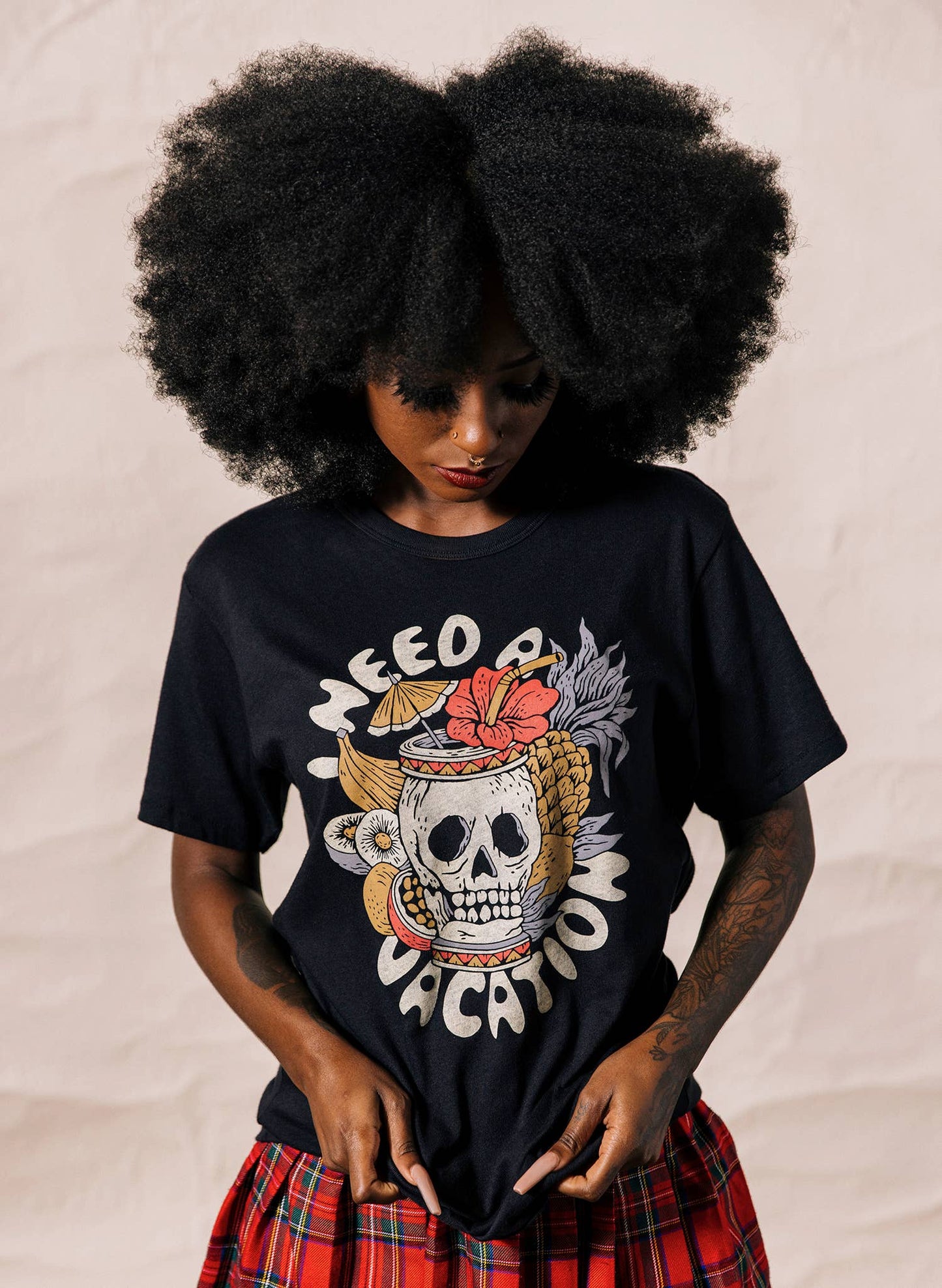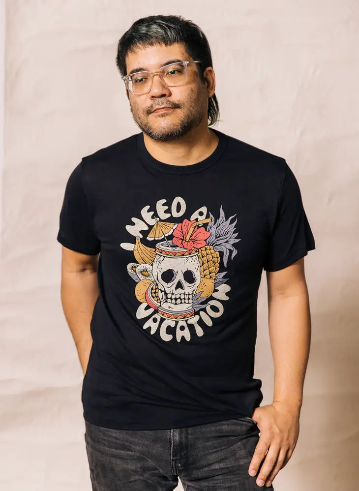 You've been 'hanging in there' and you've been 'burnt out', the only logical next step is 'needing a vacation'. Grab a tropical pineapple drink with a straw and a little parasol and lets toast to our misery! Each unisex graphic t-shirt is proudly printed in the USA using eco-friendly inks.
