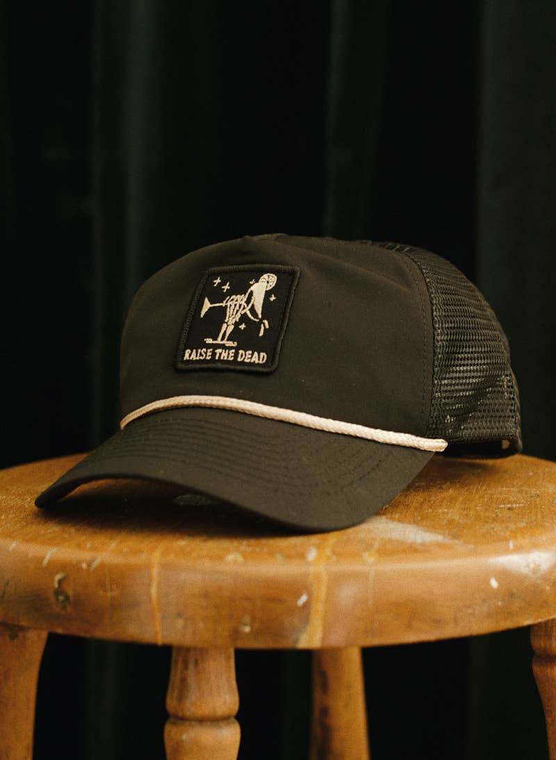 Nothing will 'Raise the Dead' like some glorious margs. This trucker style nylon hat features mesh panels and an adjustable plastic snapback at the back for a comfortable fit.