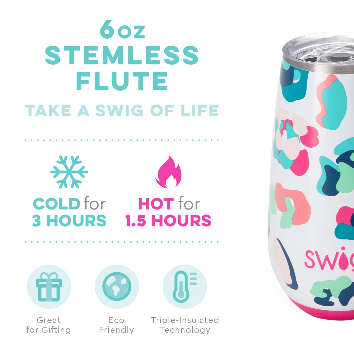 Take a Swig of bubbly in your very own 6oz Stemless Flute! Our triple insulation technology allows our stemless flutes to keep drinks cold up to 3 hours and hot up to 1.5 hours. These Stemless Flutes can hold up to 6oz of your preferred bubbly beverage and make a great gift for any occasion!