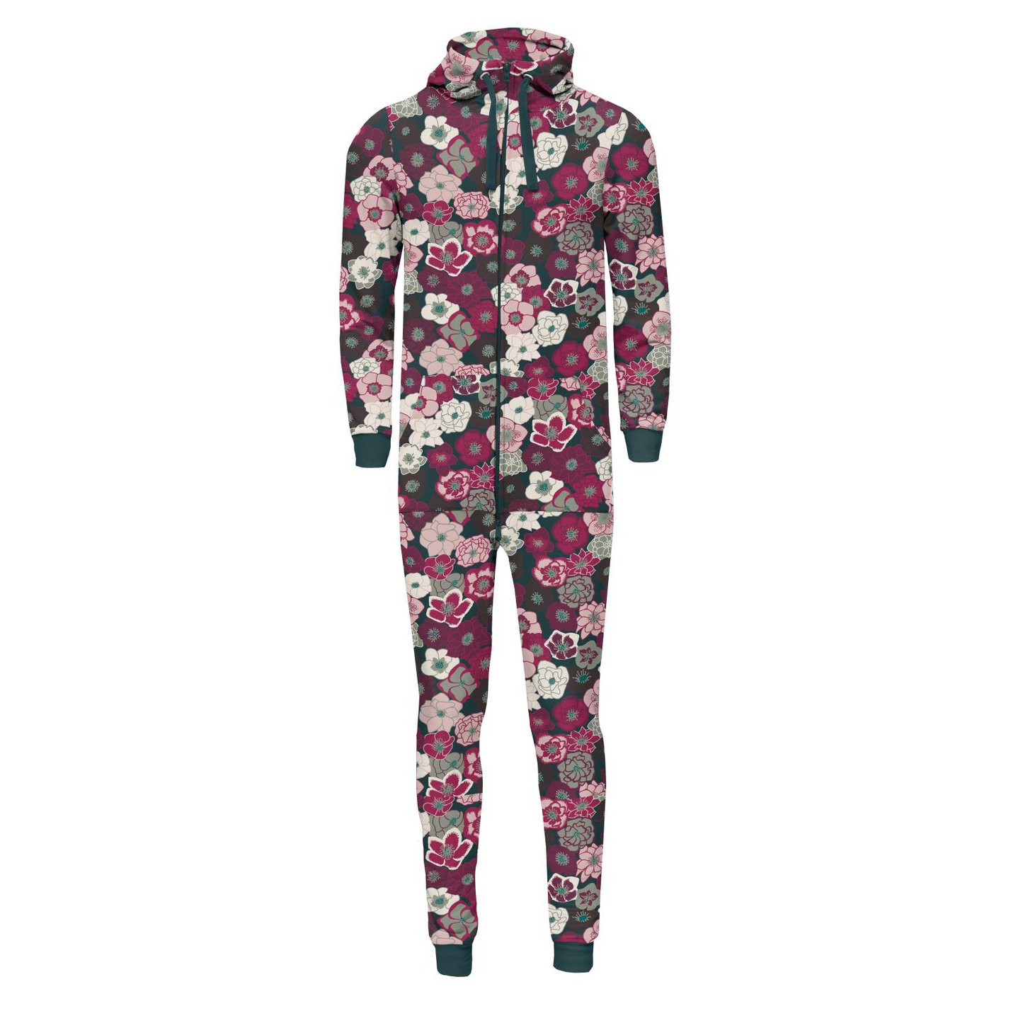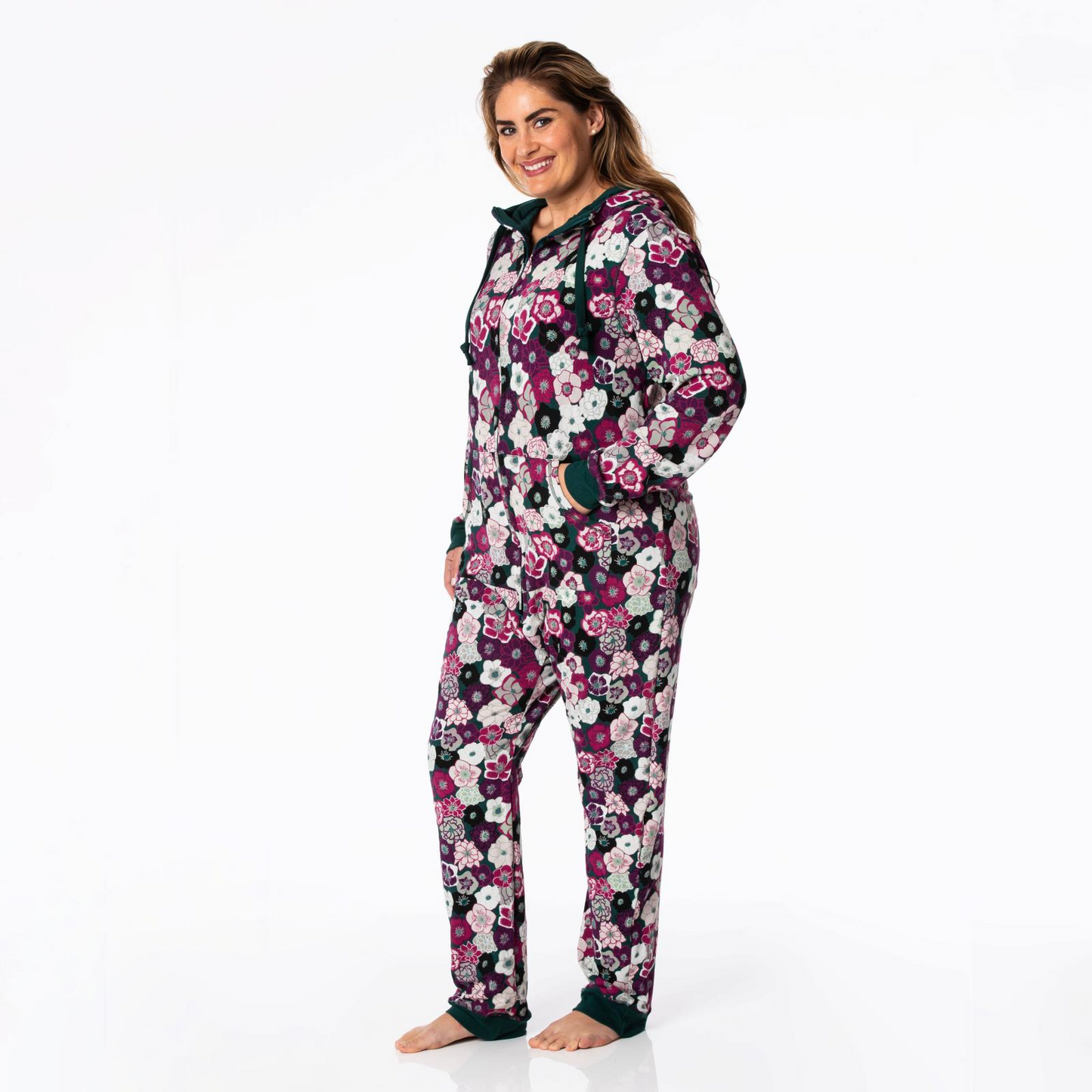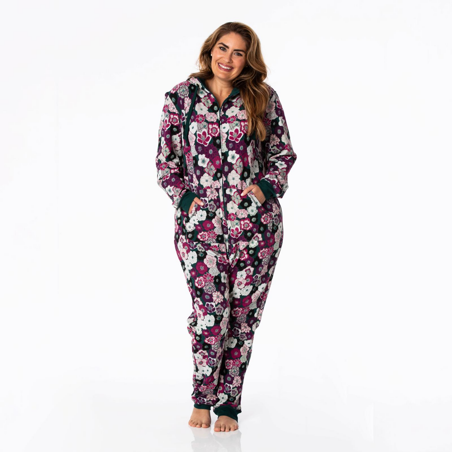 Last One - Size XXS: Adult Fleece Jumpsuit with Hood - Hellebores