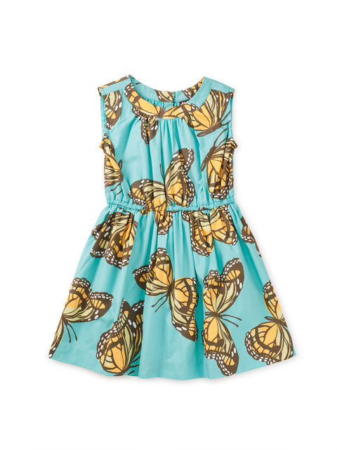 There's no more beautiful symbol of growth and transformation than the Monarch butterfly, a graphic inspired by our in-house artists' Mexico travels. The 100% cotton poplin fabric is so lightweight and comfortable and keeps its shape and color wash after wash. Extra details like the button closure at the center back (spare button included), a soft lined interior, and a full twirly skort made this an extra special piece. The dress falls just below the knee and can be worn as a tunic as they grow and grow.
