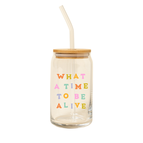 Can Glass with Lid & Straw - What a Time to Be Alive