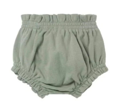 Gathered bloomers in our velvety soft organic brushed jersey. Elasticized waist and leg openings.