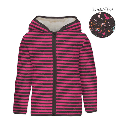 Quilted Jacket with Sherpa Lined Hood - Awesome Stripe with Calypso Splatter Paint
