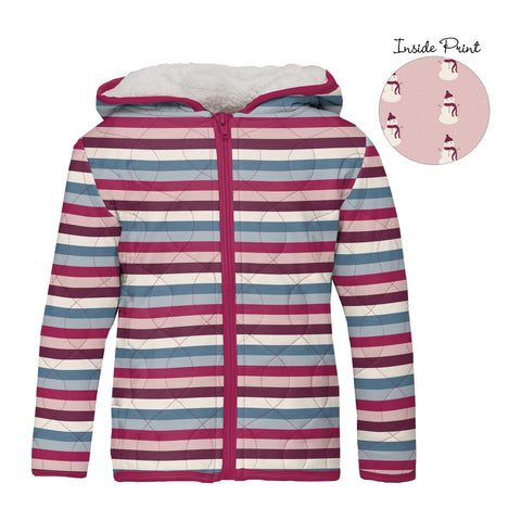 Quilted Jacket - Jingle Bell Stripe with Baby Rose Snowman