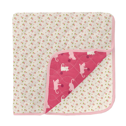 Quilted Toddler Blanket - Natural Buds + Winter Rose Kitty