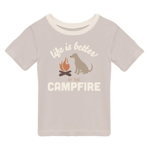 Graphic Crew Neck Tee (Short Sleeve) - Latte Life is Better by the Campfire