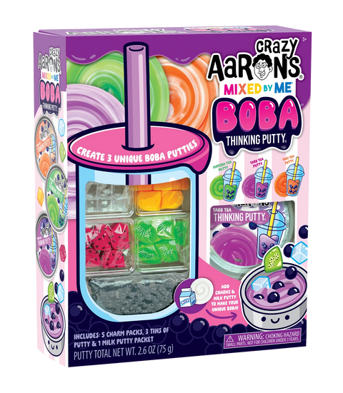 Who doesn’t love Boba Tea? Create your own Boba Tea putties with the Crazy Aaron’s® Mixed by Me® Boba Thinking Putty® Kit. With three different tea base options and five varieties of fruit-themed mix-ins, the Boba putty possibilities are endless!