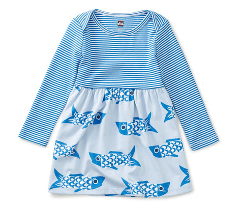 The print on this dress takes it to next-level cute. Cotton jersey is soft, comfy and easy to care for. A lap shoulder means easy on-and-off over your little one's head. Pair with leggings for a perfect look. Our knit dresses are crafted to be extra soft and comfy, built to last season after season.