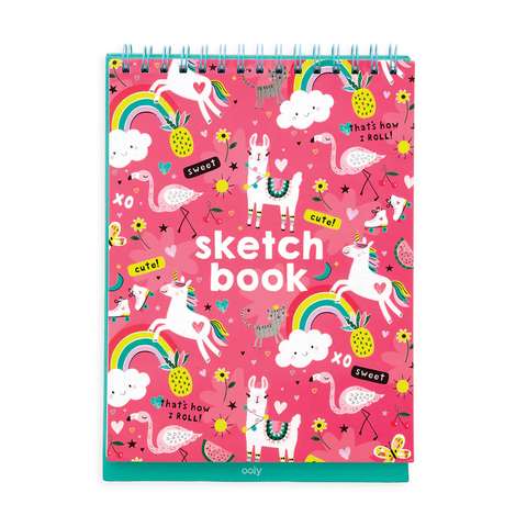 Fuzzy unicorns and llamas accents adorn the whimsical cover of Funtastic Friends Sketchbook. Sketch & Show sketchbook has its own built in easel - type stand! The perfect combination of cute and practical! Draw your own unicorns then display them!