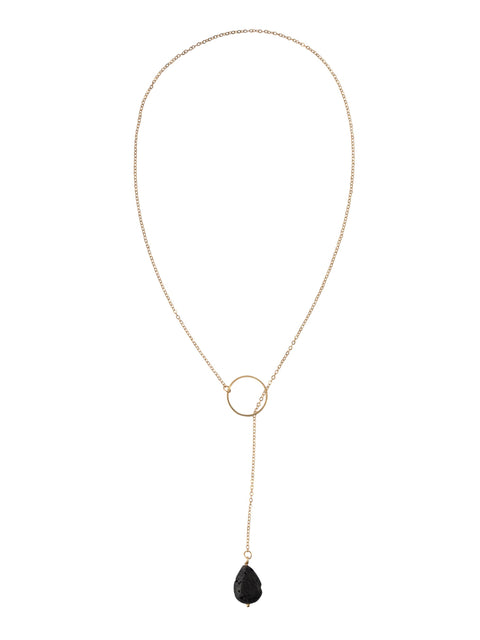 Collar - Zengo Gold Circle Lava Bead Lariat