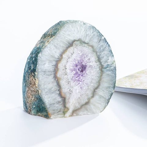 Our beautiful, large agate light is the perfect home décor piece. Agate is known to bring harmony to the physical, spiritual, and emotional bodies. The crystal light has one cut and polished side, providing an ethereal glow through the patterns in the stone. The outer surface of the crystal light is in its raw state.