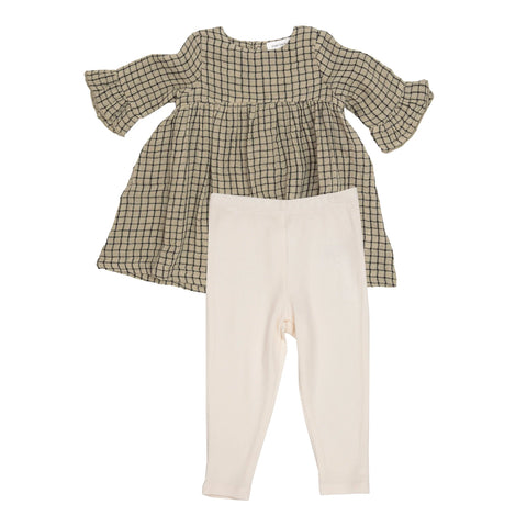 Last One - Size 12/18M: Bell Sleeve Dress & Leggings - Grid Gingham Slate Green