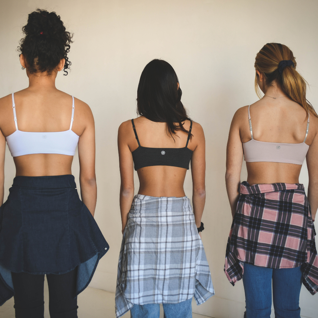 Love our Bleum Bra but need more coverage? Our Bleum Petal Bra is an enhanced version of our best-selling Bleum Bra called "the best bra ever" with pads SEWN INSIDE. Still fully reversible and made of the same, super soft fabric, the Bleum Petal Bra provides extra coverage for girls as they develop with padding that stays in place all day, everyday and even when washed. Whether it’s your first bra or your 20th, we have the perfect one for you! It’s so soft you’ll barely notice it’s there.