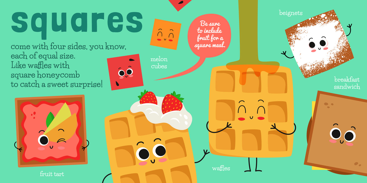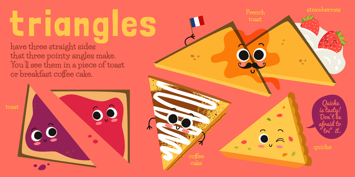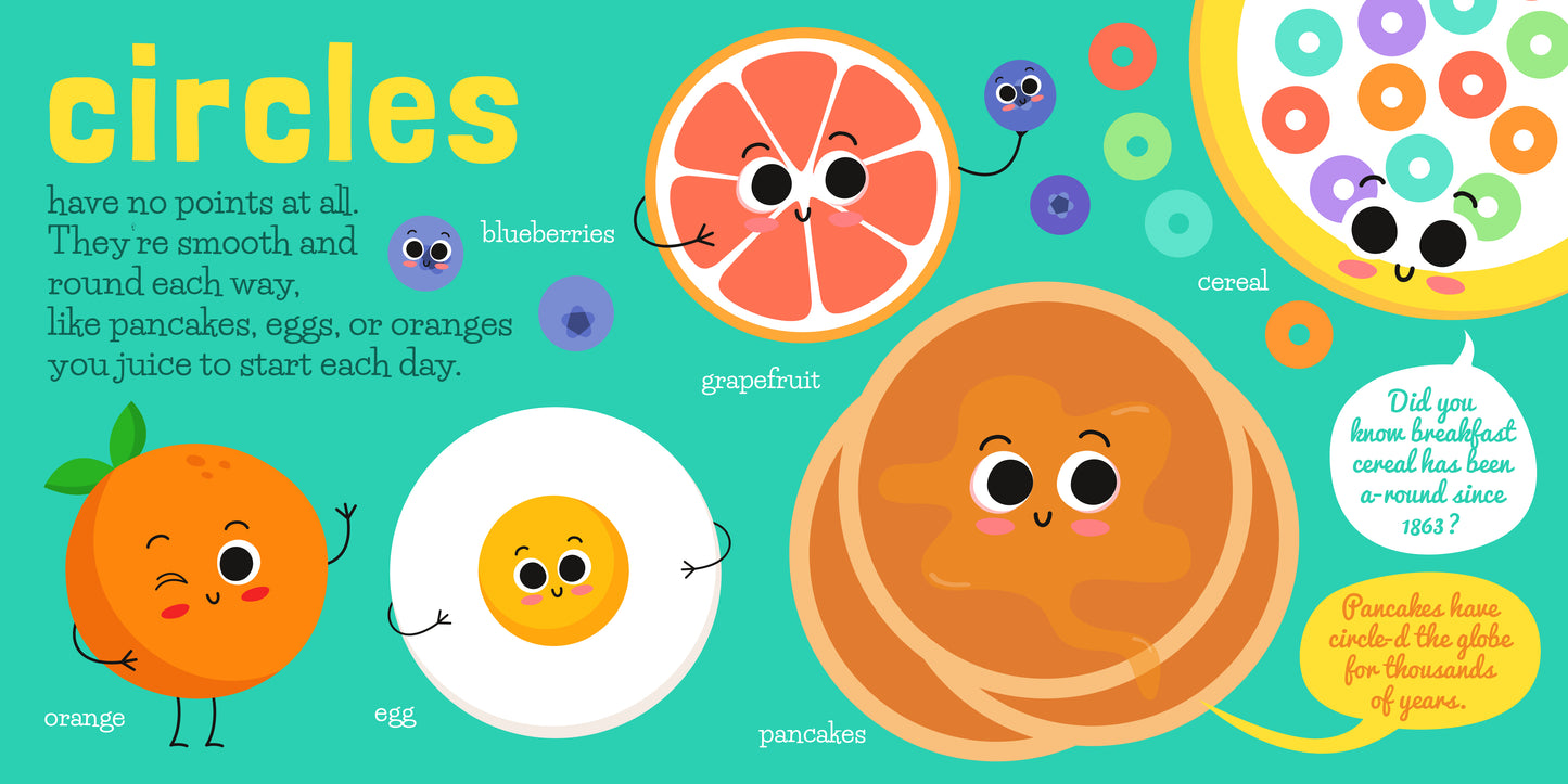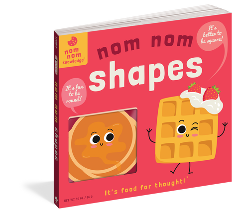 Nom Nom Shapes gives young minds food for thought—literally! Kids who love Shopkins and Num Noms will enjoy learning their shapes with the help and encouragement of adorable food characters—round cookies, square waffles, and triangle pie slices to name a few—found throughout. Even the book feels like food packaging with an acetate window on the front cover hinting at the delicious contents inside. It's food. It's education. It's cute. It's Nom Nom Knowledge!