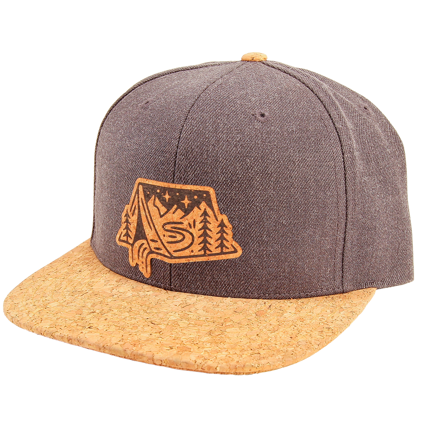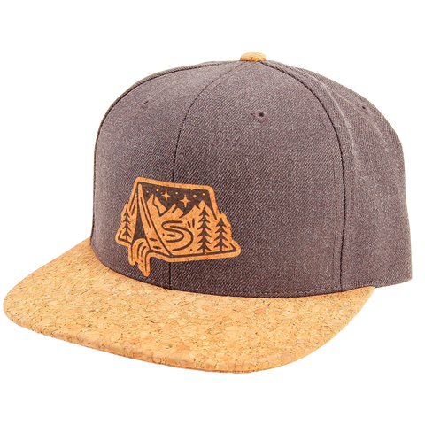 The Camping InTent cork brim snapback incorporates natural style into the snapback design, featuring a wool blend upper, real cork brim, and a matching cork patch, engraved with a signature graphic from the great Liam Ashurst. If you like this cap be sure to check out our whole collection featuring his designs here.