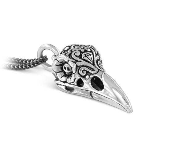 Jewelry - Day Of The Dead Raven Skull Necklace (Silver)