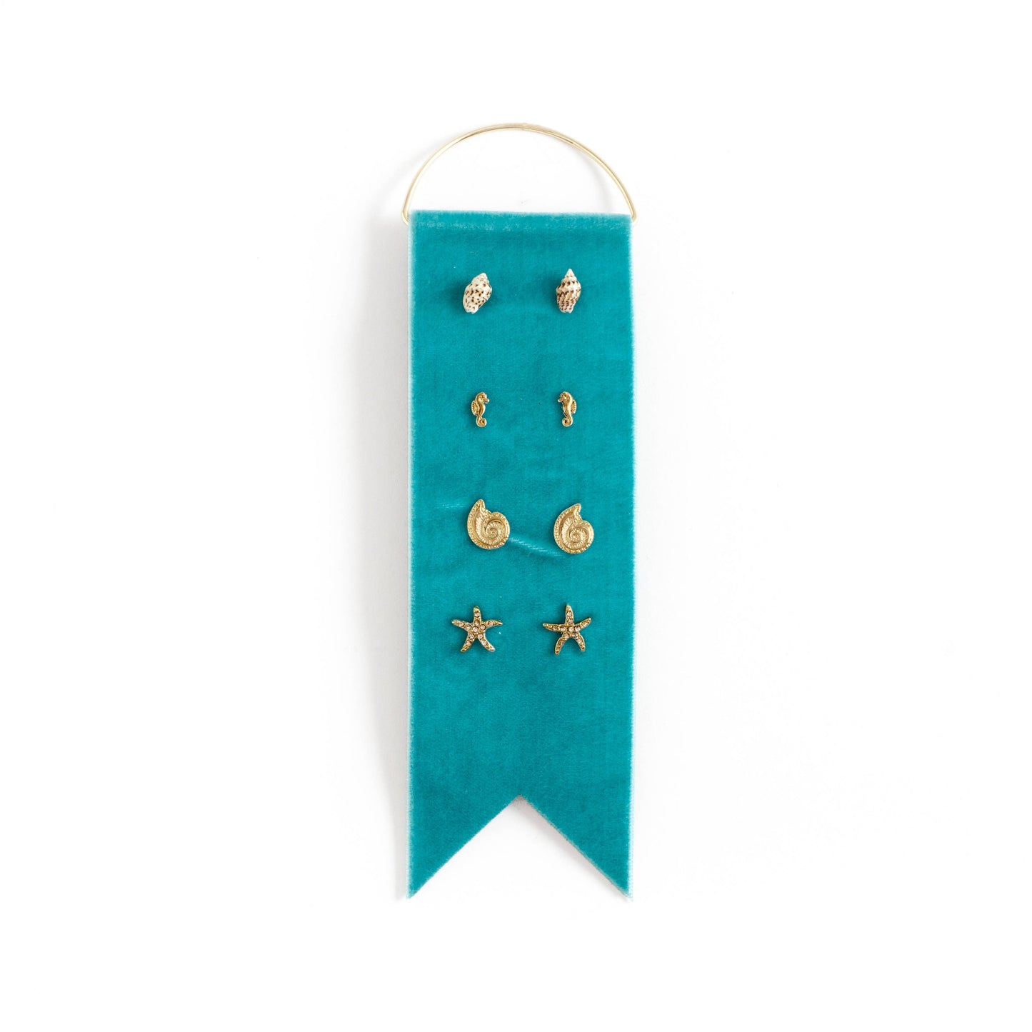 Earrings - Turquoise velvet with 4 sets of earrings - ocean inspired(Gold)