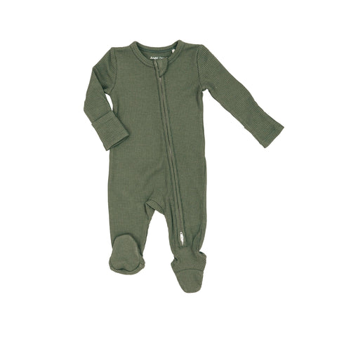 Footie (2 Way Zipper) - Olive Waffle