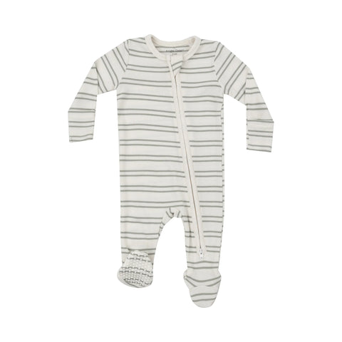 Footie (2 Way Zipper) - Ribbed Desert Sage Stripe