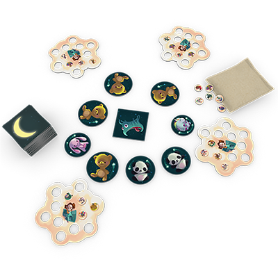 "Be the first player to fill your board with 12 Dream tokens! To do so and on your turn, you must choose a Cuddly Toy that fully covers the Nightmare in the middle of the table. Thus, you will gain tokens and make sweet dreams!"