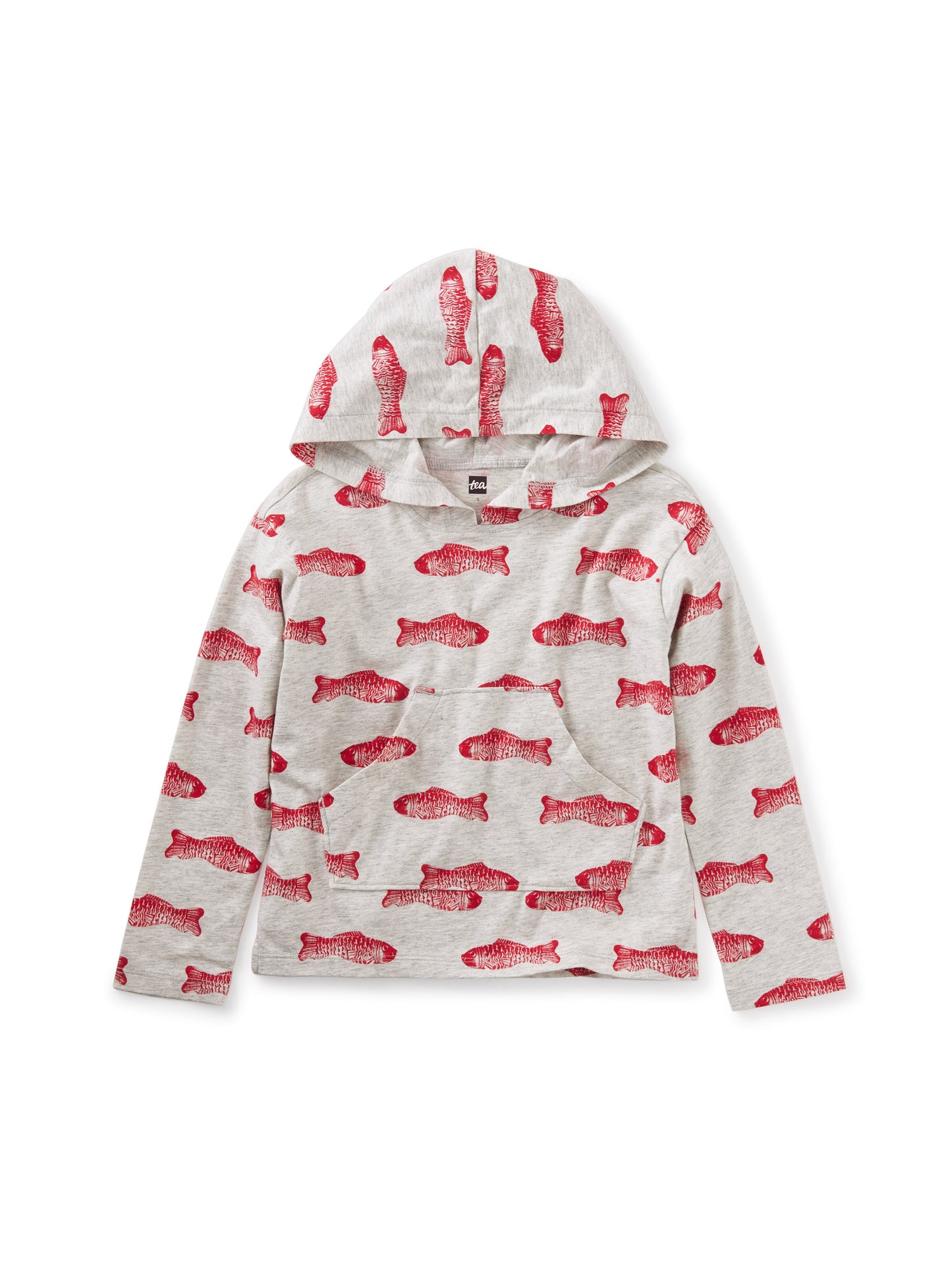 A sweet Swedish print splashes across this soft, 100% cotton hoodie. A great light layer for those in-between months, it looks as good on as it does tied around their waist!
