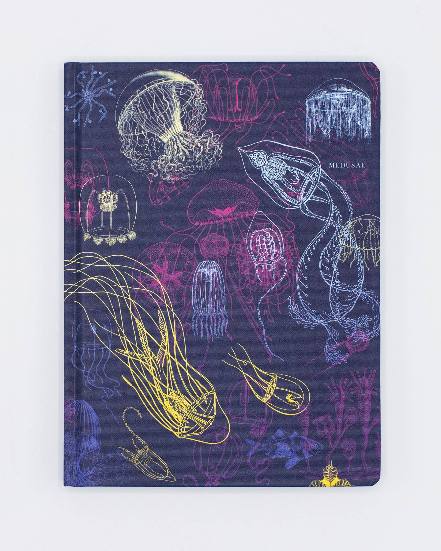 Muse on the mesmerizing undulations of jellyfish, or draw up your plans for an epic beach cleanup in this electric blue, yellow and purple notebook.