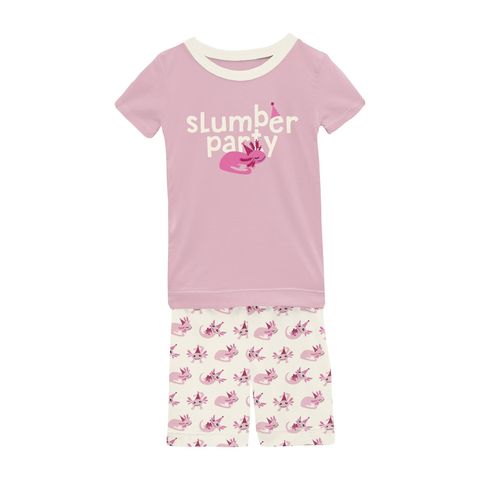 2 Piece Pajama Set (Short Sleeve) - Natural Axolotl Party with Graphic Top