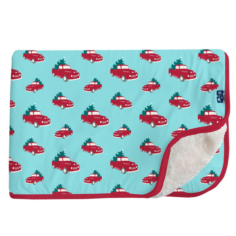 Toddler Blanket with Sherpa Backing - Iceberg Trucks and Trees