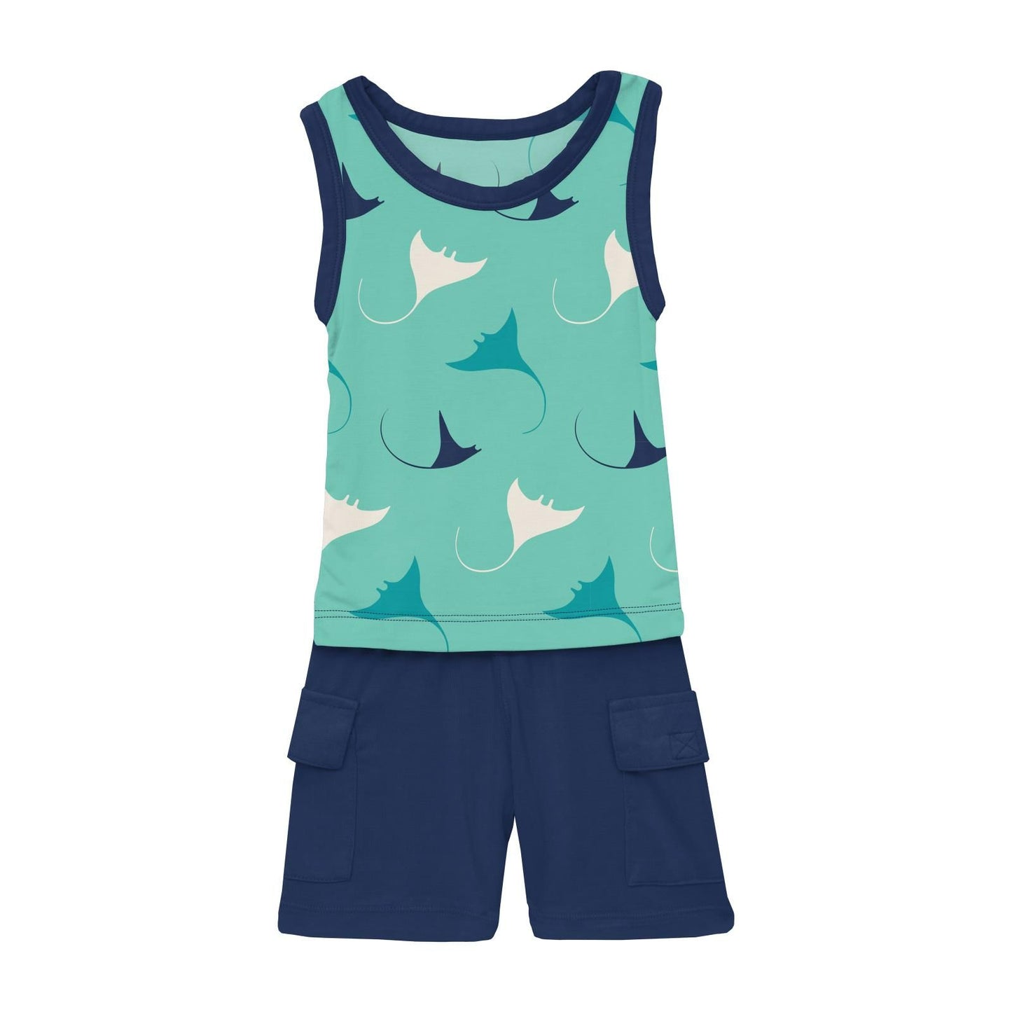 Bring on the sunshine! An easy and adorable tank that he will love to wear. Play in it, relax in it or sleep in it...the options are endless! Available in vibrant solids, and fun, original prints. Also includes matching cargo shorts!