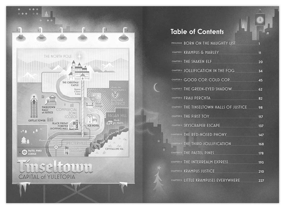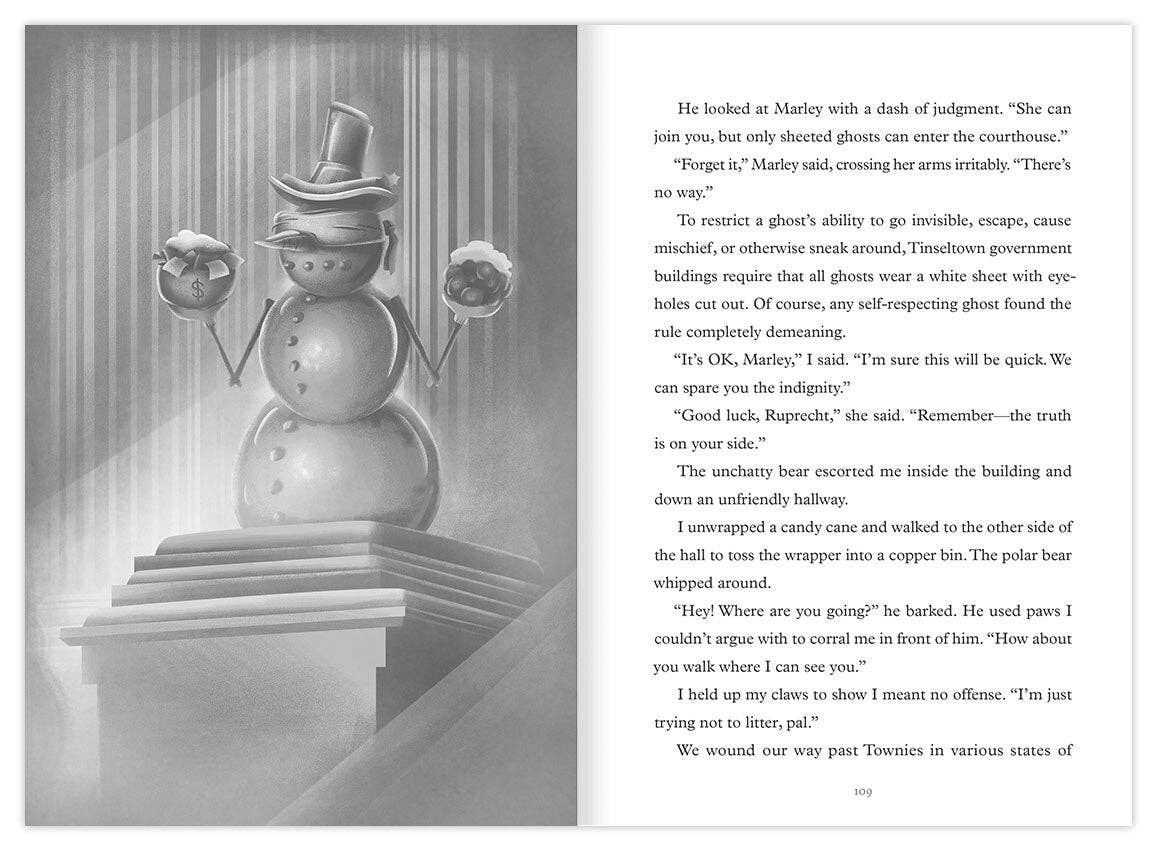 It’s almost Christmas, but the nights in Tinseltown are anything but silent. In this hardboiled parody of The Maltese Falcon, Ruprecht, a twelve-year-old krampus and wannabe detective, gets more than he bargained for when he takes the case of a terrified elf. Finding himself at the top of the Tinseltown Police Department’s naughty list, Ruprecht is joined by his best friend, a ghost named Marley, to explore the underbelly of this festive but gritty metropolis, solve the mystery, and clear his name for good.