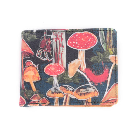 Cute little creepy crawlers climb, stretch and hang in a mushroom paradise. Our compact and thoughtfully designed bifold wallet holds up to 8 cards, includes a cash slot and a zippered change compartment.