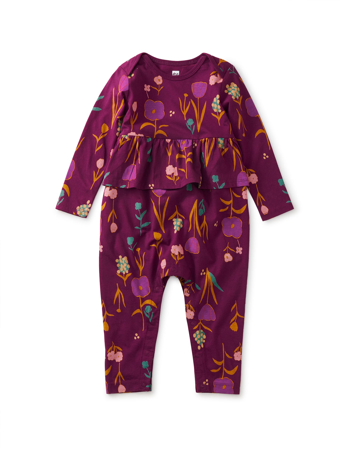 Peplum Baby Romper (Long Sleeve) - Freyja Floral in Purple