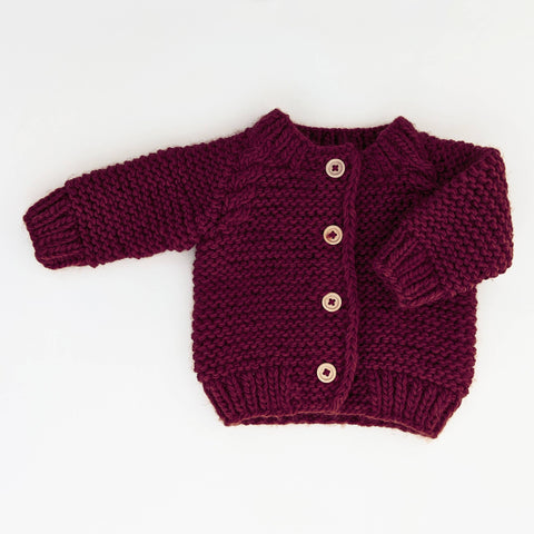 Cardigan Sweater - Plum Garter Stitch