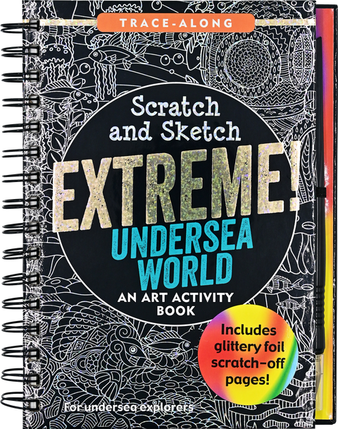 Artists ages 8 and up will go wild with Scratch and Sketch Extreme! Undersea World! Use the super-fine stylus included to trace the white lines on each black-coated page, uncovering undersea art that sparkles and shines. Scratch and Sketch: Extreme! art activity book is packed with oceanic subjects, from sharks to shipwrecks! The right-hand, black-coated pages feature intricate art for tracing to reveal brilliant golds, silvers, greens, or rainbow glitter beneath. Left-hand pages are coloring pages, ready for you to get creative with markers or colored pencils.