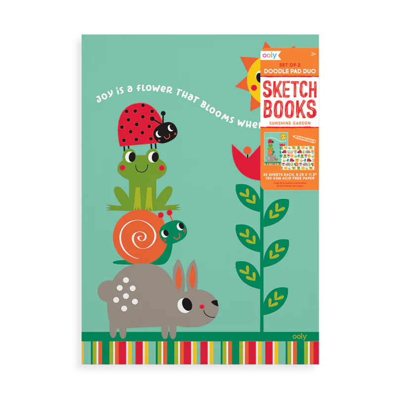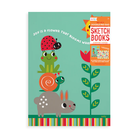 Delightful outdoor pals are on the covers of the Sunshine Garden Doodle Pad Sketchbooks. These sketchbooks come in assorted cute critters covers; they are enjoying the sunshine and playing in nature. Each garden sketchbook comes with 32 pages of quality sketch paper.