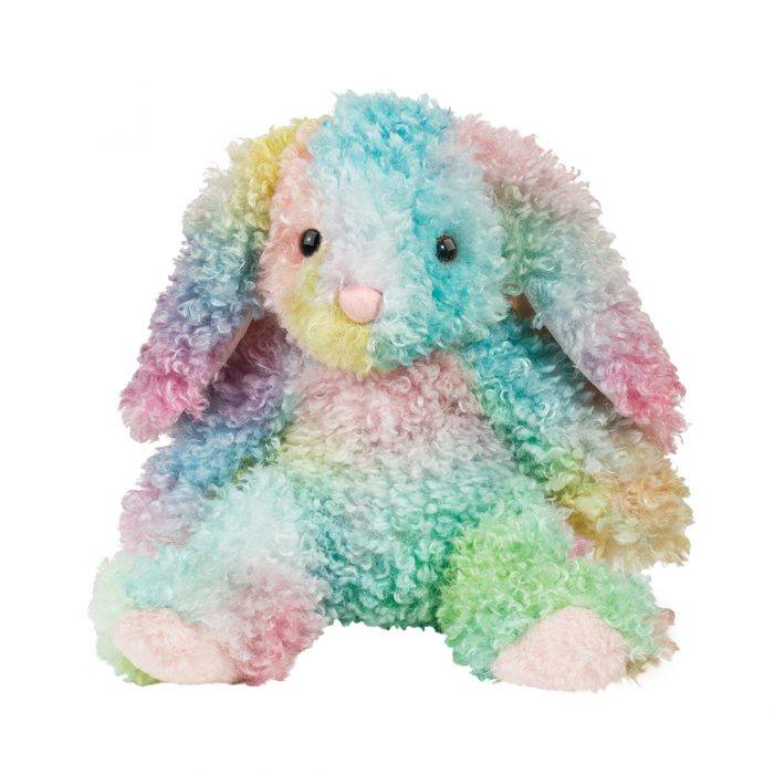 Awash in a playful pastel pattern of tie dye colors, Kaleidoscope the Rainbow Bunny stuffed animal celebrates the vibrancy of the springtime season! Sitting at 12” tall, this sweet rabbit is perfectly sized for cuddling. Indulge yourself with the delightfully curly texture of Kaleidoscope’s plush coat with every hug. Boasting irresistibly soft materials and a floppy body designed to melt into your arms, it’ll be hard to put her down. Oversized lop ears and inquisitive dark eyes create an expression that will win Kaleidoscope new friends wherever she goes. Display her next to an Easter basket this season or keep this colorful plush Bunny all to yourself!