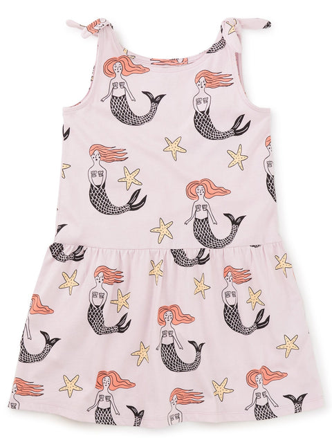 Mermaids and starfish float under the sea on this whimsical design that's part of our Mexico collection. The drop-hem's generous ruffle and adjustable shoulder ties make this dress so light and summery. Crafted of quality 100% soft cotton knit that keeps its color and shape season after season. Below mid-thigh length.