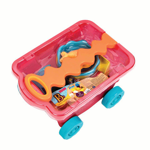 Get summer rolling with the wavy-wagon from b toys. This pull along cart is filled with fun ideas. High-quality materials, funky textures and unique features On 11 sand and water toys that kids will love. B. Rolling B. Building B. Proud B. Bonding B. You