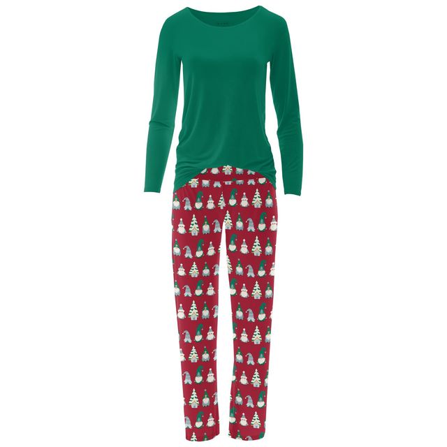 Women's Relaxed Tee & Pajama Pants Set - Crimson Gnomes